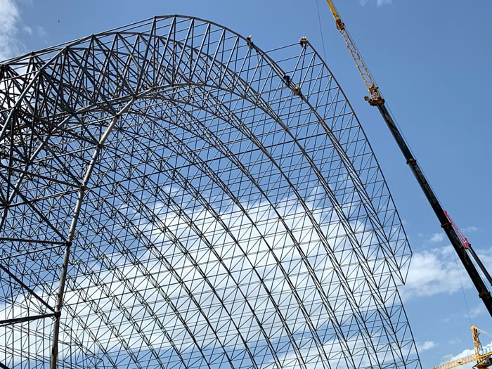 (2)网架加工前应对现场尺寸进行复测,确认无误后方可进行加工、安装;网架制作、运输、安装应遵守《空间网格结构技术规程》JGJ7-2010、《钢网架益阳螺栓球节点》JG/T 10-2009、《钢网架益阳螺栓球节点用高强度螺栓》 GB/T 16939-2016、《益阳钢结构益阳工程益阳施工规范》 GB50755-2012、《益阳钢结构益阳工程施工质量验收标准》 GB50205-2020。